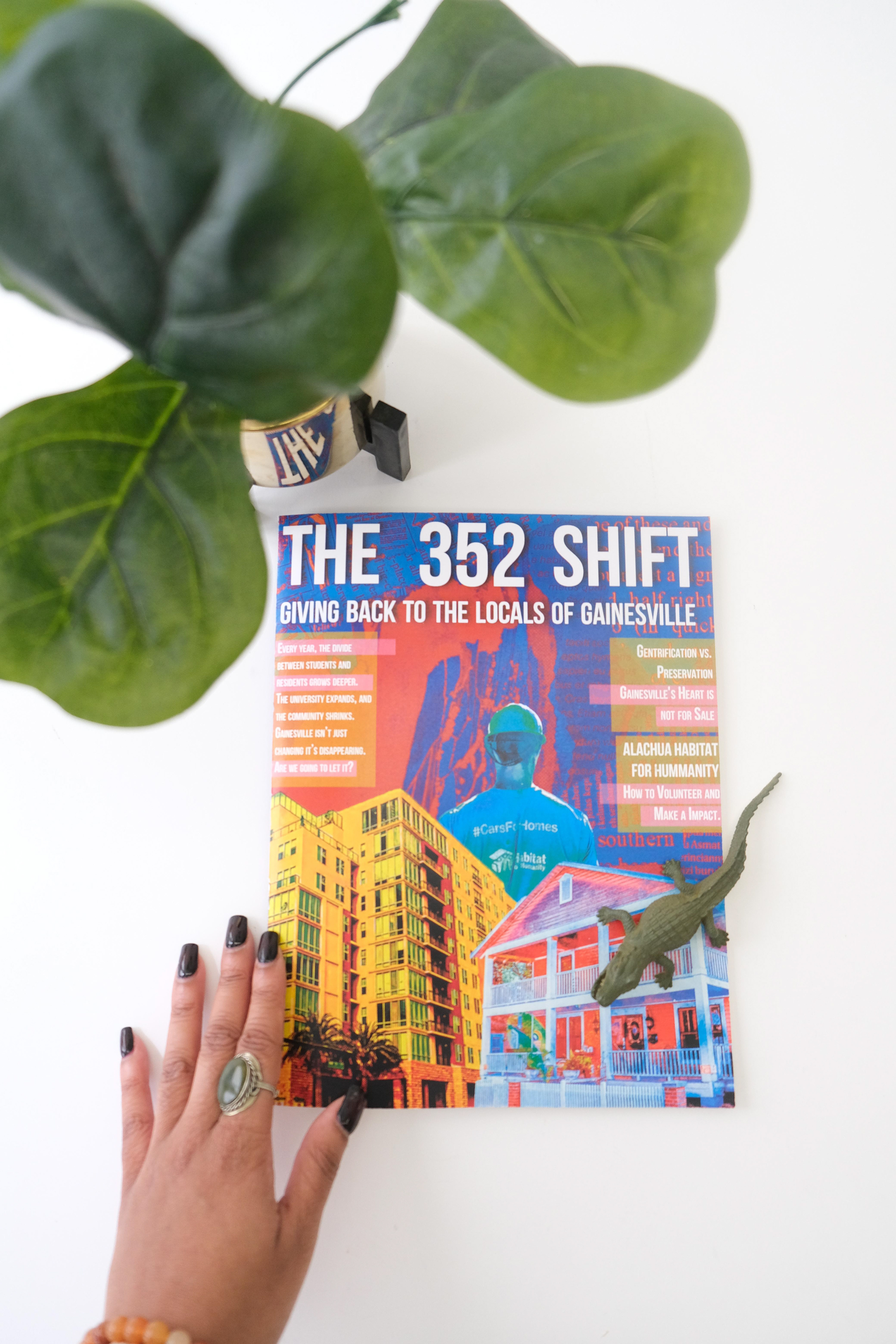The 352 Shift is a magazine we created highlighting local Gainesville non-profits, in response to the issues such as affordable housing, gentrification, and studentification.